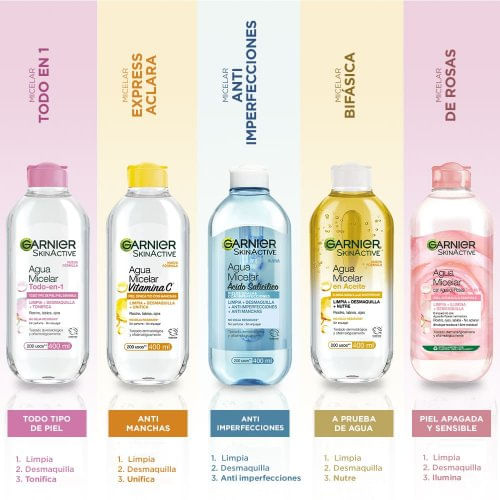 Higiene y Cuidado PersonalBellezaCuidado FacialAgua Micelar Garnier Con Agua De Rosas x 400 ml
