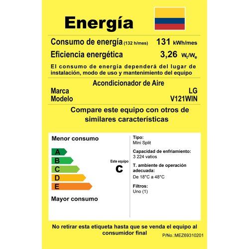 Aire Acondicionado LG 12000 BTU 110V Dual Inverter V121WIN