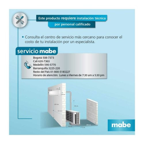 Aire Acondicionado Mabe 18000 Btu 220V Convencional MMT18CDBWCCC8