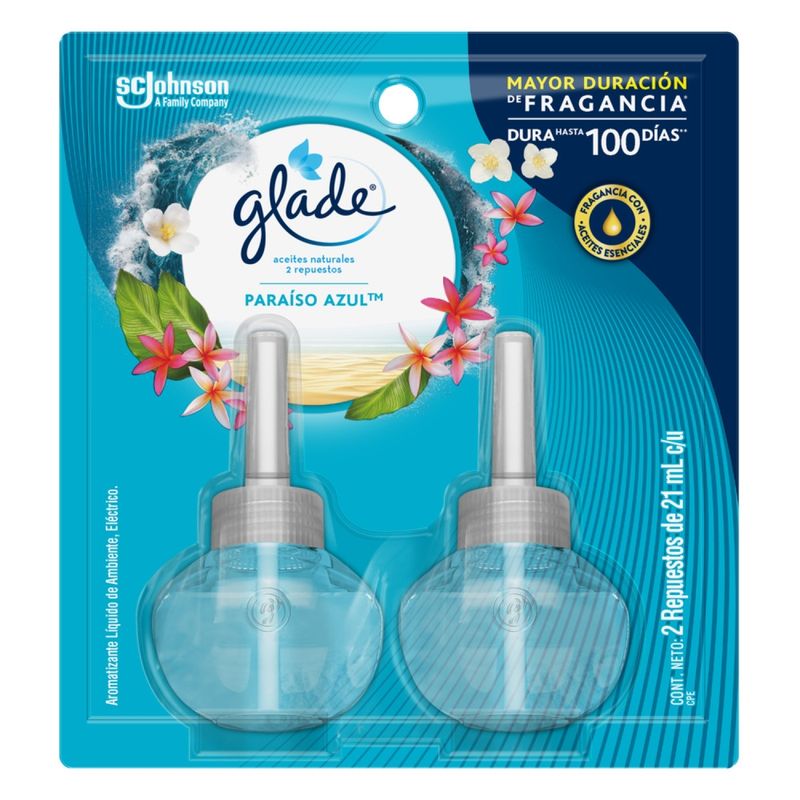 Ambientador Glade Aceite Repuesto X2 Paraiso Azul
