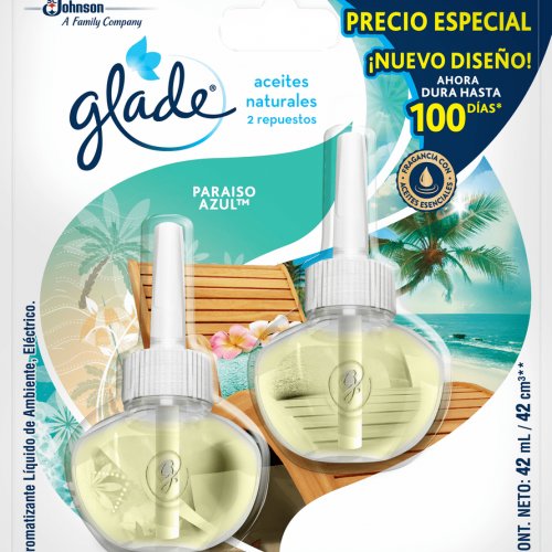 MercadoAseo HogarAmbientadoresAmbientador Glade Aceite Repuesto X2 Paraiso Azul