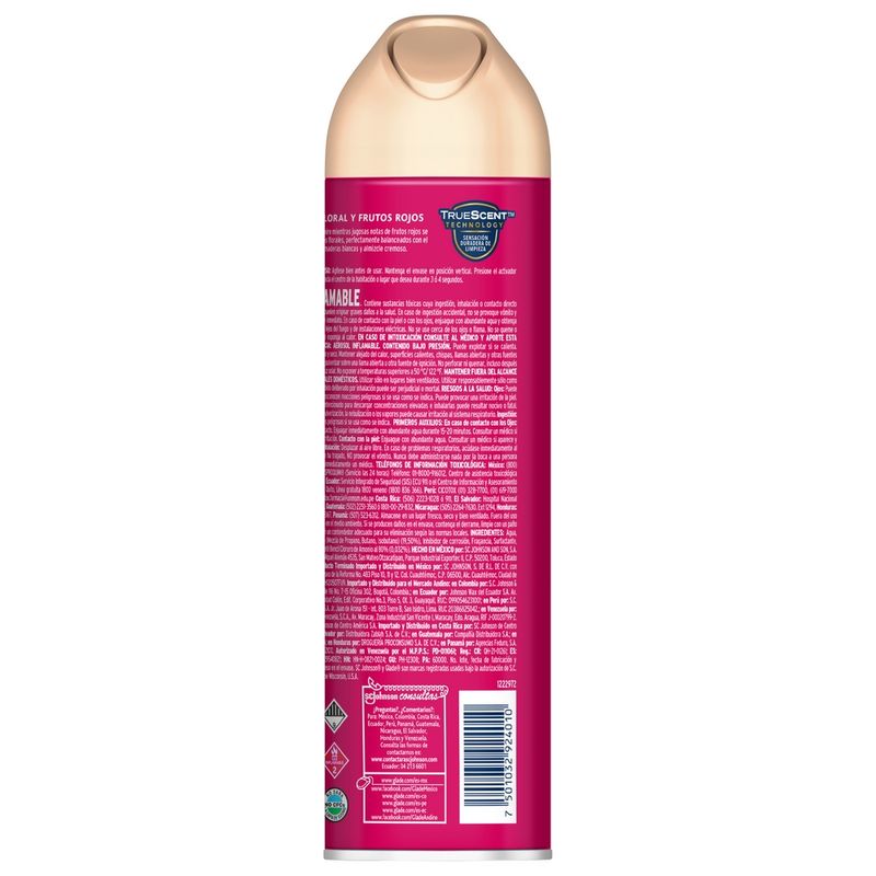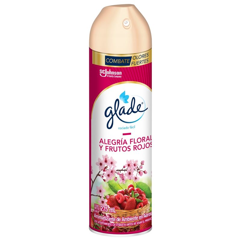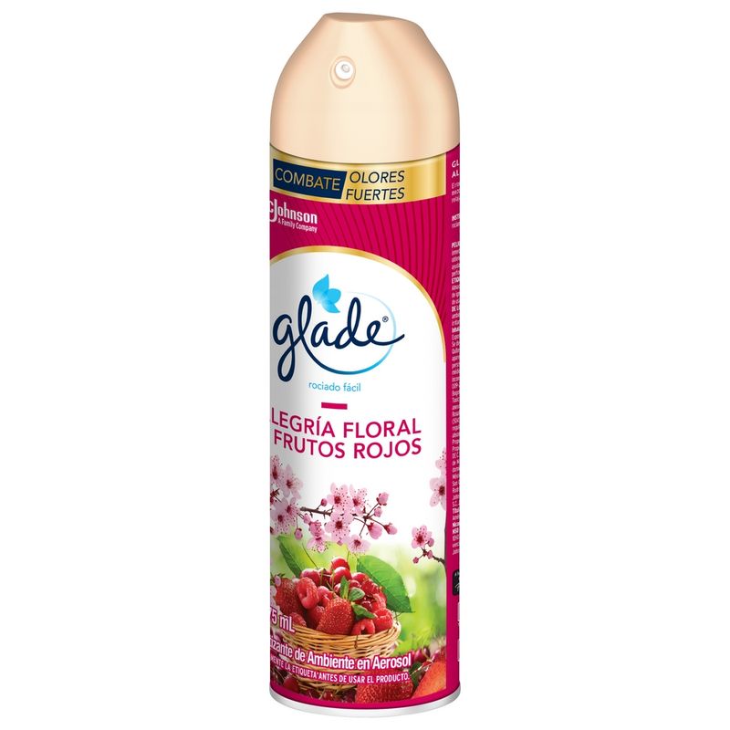 Elimina olores y aromatiza fácilmente tu hogar con Glade aerosol Alegría floral y frutos rojos 275ml. hecho con aceites naturales, da frescura instantanea a tu baño, cocina, habitación o cualquier espacio del hogar.