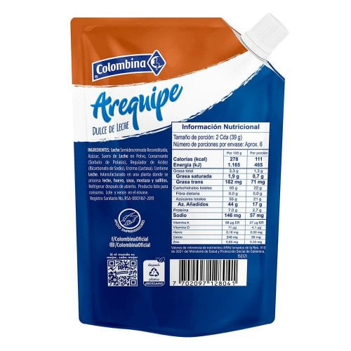 MercadoPasabocasConfitería y DulcesArequipe Colombina Doypack x 220 g