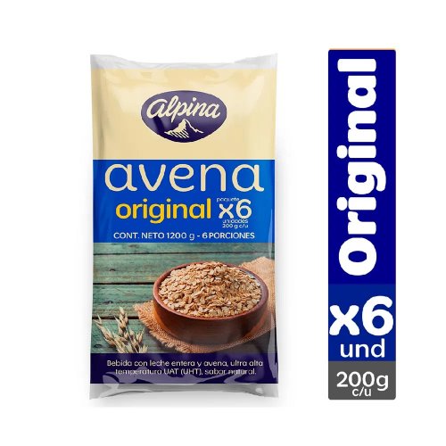 MercadoLácteos Huevos y RefrigeradosYogurt y Bebidas LácteasAvena Alpina Original Bolsa x 6 und 200 g c/u