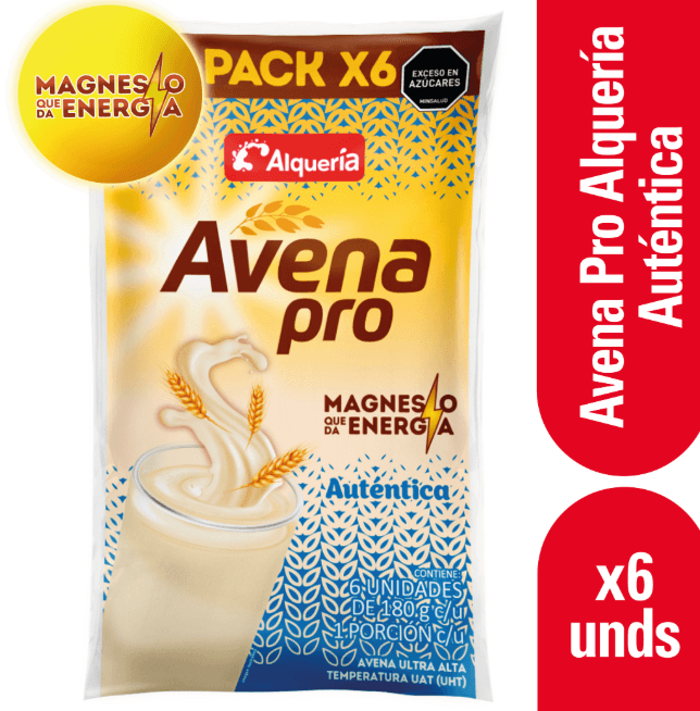 MercadoLácteos Huevos y RefrigeradosYogurt y Bebidas LácteasAvena Alqueria Pro Autentica Bolsa x 6 und x 1080 g