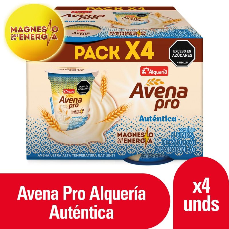 MercadoLácteos Huevos y RefrigeradosYogurt y Bebidas LácteasAvena Alquería Pro Auténtica Vaso 4 und x 220 g c/u