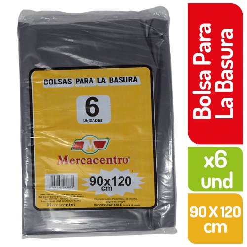 MercadoLimpieza de CocinaBolsas De Basura y DesechablesBolsa Mercacentro 90 X 120 Grande 6 und
