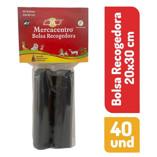Bolsa Recogedora Mercacentro Negra 2 Rollos 20x30 cm x 20 und c/u