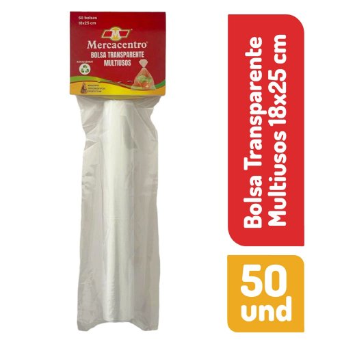 MercadoLimpieza de CocinaBolsas De Basura y DesechablesBolsa Transparente Mercacentro Multiusos 18x25 cm x 50 und