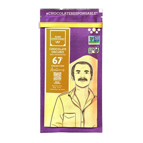 Chocolate Juan Choconat Barra 67% Cacao Oscuro Avellanas X65