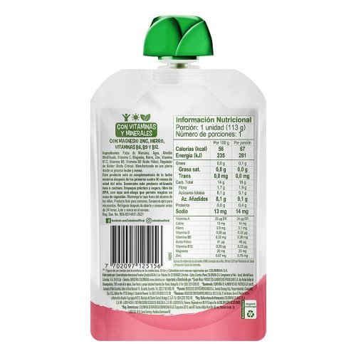 Cuidado del BebéAlimentacionLeches Compotas y PapillasCompota Colombina Crios Manzana x 113 g Doypack