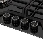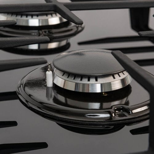 Estufa de empotrar en vidrio templado de seguridad con bordes redondeados, encendido electrónico incorporado y parrillas completas en hierro fundido, incorpora válvulas multiposición que permiten ajustar los niveles de la llama con precisión en 9 niveles diferentes. Quemadores italianos SABAF de superior calidad y rendimiento que distribuyen el calor de manera uniforme, reduciendo el tiempo de cocción. Difusor de alta eficiencia que aprovecha mejor el gas que consume, ahorrando entre un 5% y 15%. Perillas metálicas que garantizan una mayor vida útil, con diseño ergonómico para facilitar su manipulación. Fabricada en vidrio templado con película de seguridad en aluminio, para evitar concentraciones de calor. Cuenta con empaques antiderrame de alta resistencia que evitan filtraciones hacia el interior de la estufa y protegen el cristal. Sistema de seguridad por termopar que cierra el paso de gas en ausencia de llama.