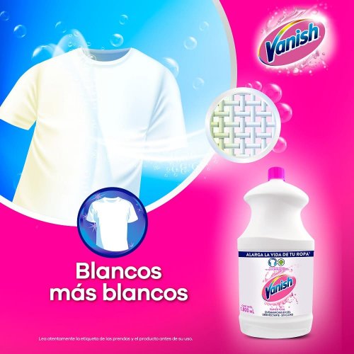 Vanish Líquido es un quitamanchas sin cloro que elimina las manchas más dificiles de tus prendas a la vez que hace tus blancos más blancos. Ahora con su fórmula mejorada tambien elimina hasta el 99.9% de bacterias.