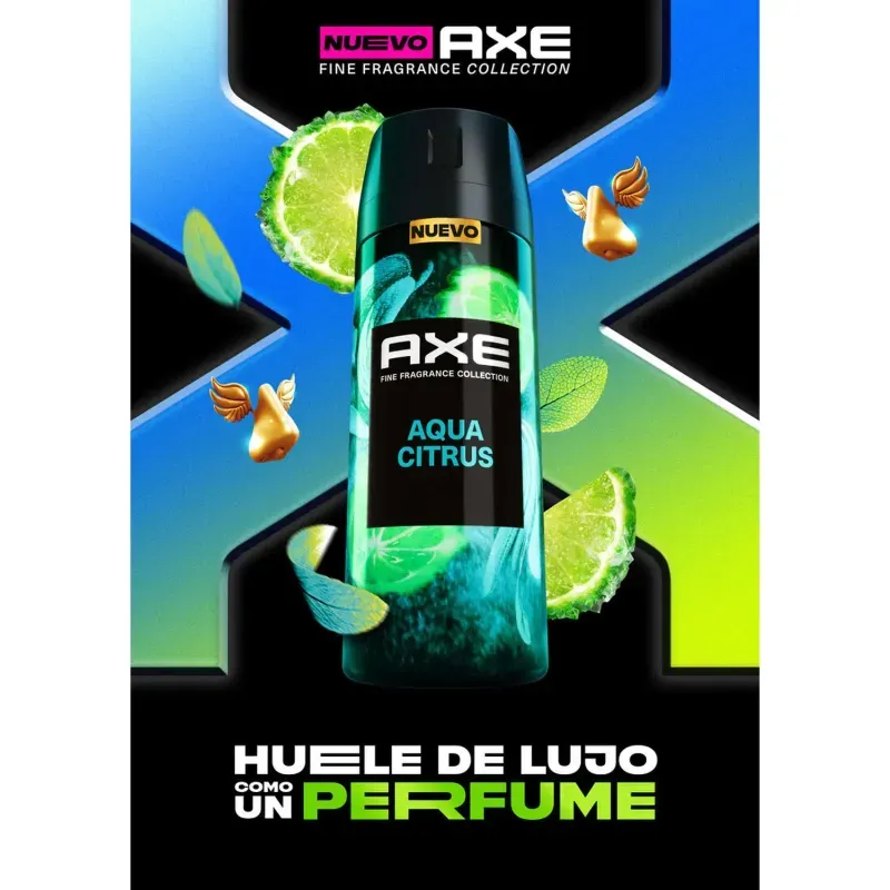 Higiene y Cuidado PersonalCuidado CorporalDesodorantesDesodorante Axe Aerosol Aqua Citrus Salvia+enebro x 96 g