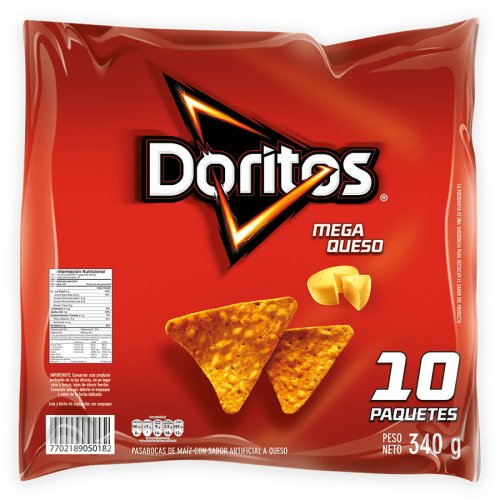 MercadoPasabocasPapas Fritas y PaquetesDoritos Mega Queso 10undx34 g Bolsa