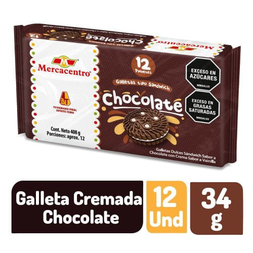 Galleta Mercacentro Cremada Chocolate x12 und 408 g