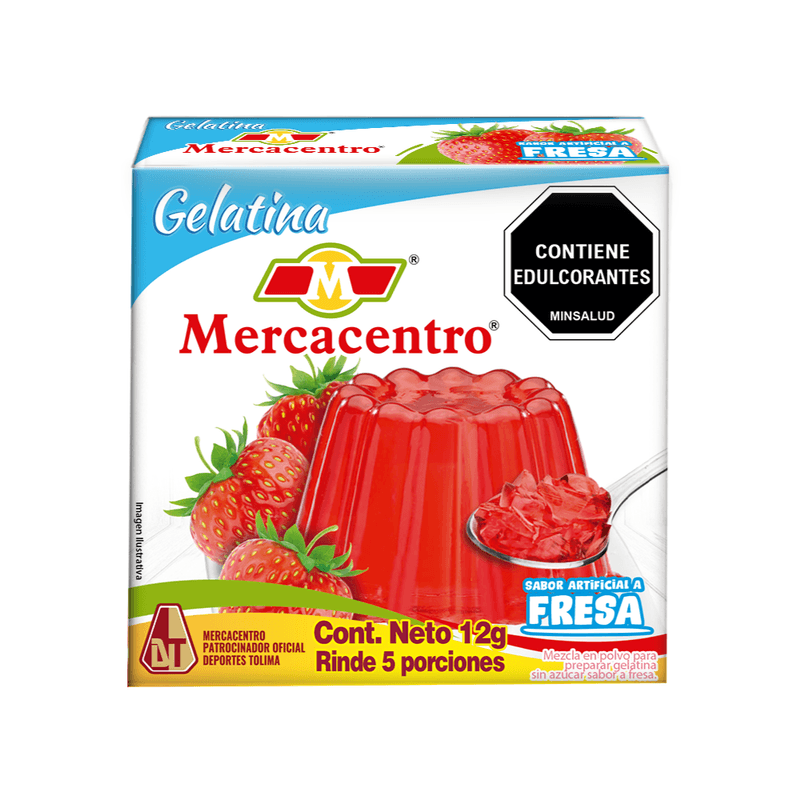 MercadoAbarrotes DespensaHarinas y Mezclas Para PrepararGelatina Mercacentro Con Splenda Fresa x 12 g