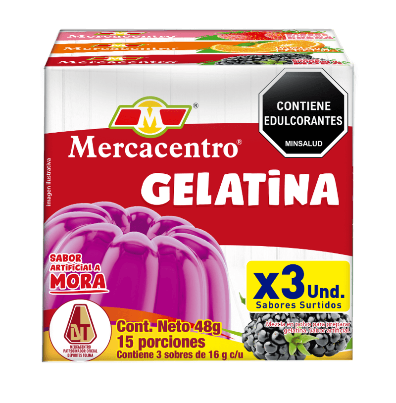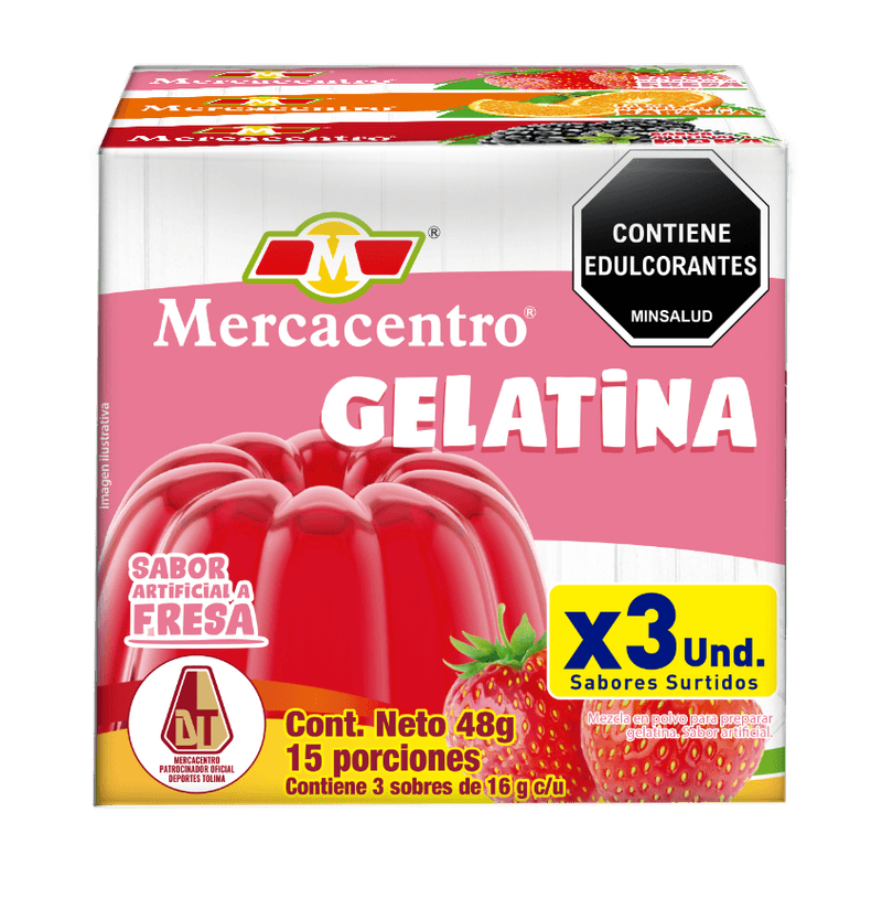 MercadoAbarrotes DespensaHarinas y Mezclas Para PrepararGelatina Mercacentro Nf x 3 Fresa Naranja Mora x 120 g