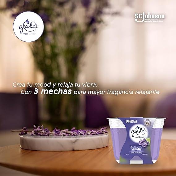MercadoAseo HogarAmbientadoresGlade Vela Aromatica Relaxing Lavender x 192 g
