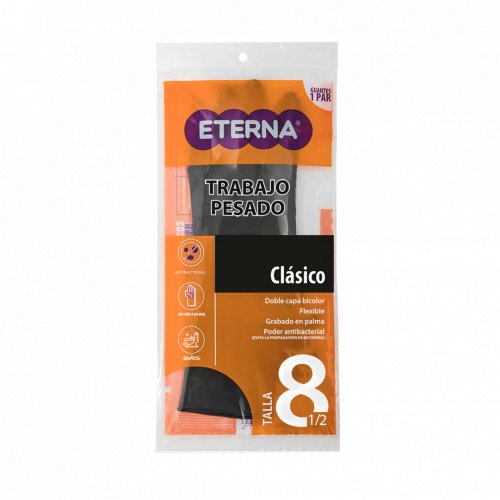 MercadoLimpieza de CocinaGuantesGuante Eterna Monocolor Negro Talla 8.5 Semi Industrial