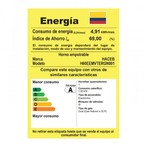 ElectrodomésticosCocinaHornos EmpotrablesHorno Empotre Haceb Tofu 60 cm Negro GN HX Tofu 60