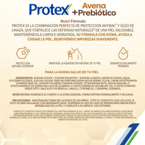 Higiene y Cuidado PersonalCuidado CorporalJabones de BañoJabón Antibacterial en barra Protex Avena 3undx110g