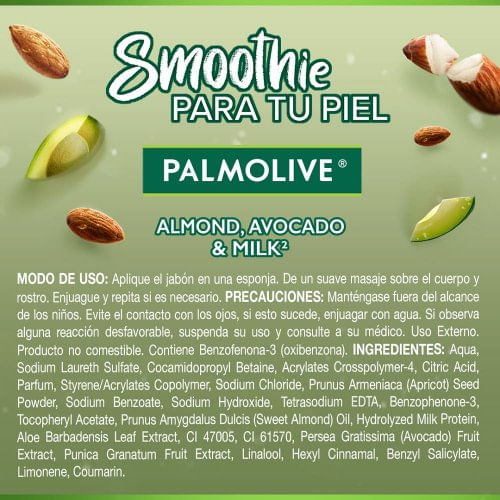 Higiene y Cuidado PersonalCuidado CorporalJabones de BañoJabón Palmolive Líquido Smoothies Aguacate y Almendras x 390 ml