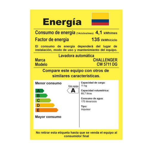 ElectrodomésticosLavadoras y SecadorasLavadorasLavadora Challenger 11 kg CW5711DG