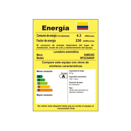 Lavadora Samsung 22 kg Gris WF22C6400AP/CO