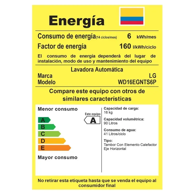 Lavadora Secadora LG Carga Frontal 16 kg WD16EGNTS6P.AEGECOL
