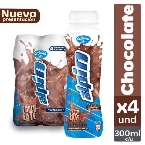MercadoLácteos Huevos y RefrigeradosLechesLeche Alpin Chocolate 4 x 300 ml Botella