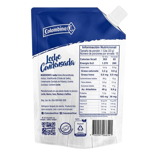 Leche Condensada Colombina Doypack 300 g
