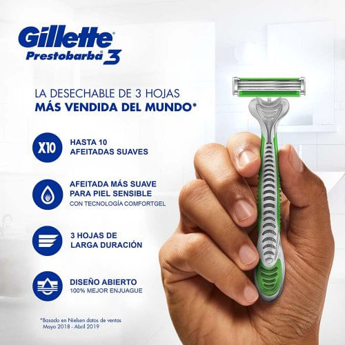 Higiene y Cuidado PersonalHigiene ÍntimaAfeitadoMáquina Prestobarba Gillette 3X1 und Sense Care