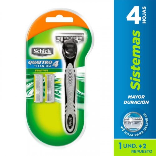 Maquina Schick Quatro Titaniun + 2 Repuestos Verde Negro