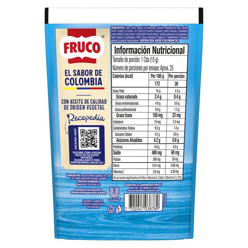 MercadoAbarrotes DespensaSalsas y CondimentosMayonesa Fruco Light Doypack 380 g
