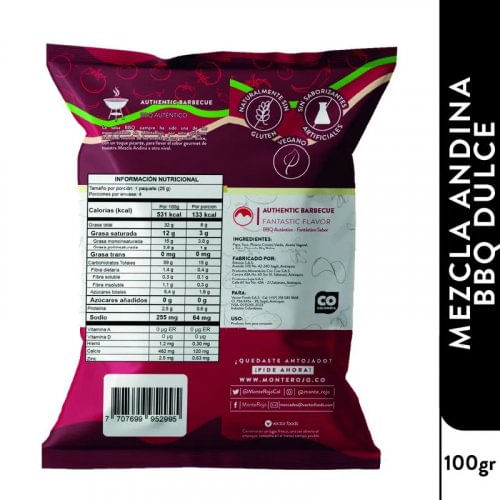 MercadoPasabocasPapas Fritas y PaquetesMezcla Andina Monte Rojo BBQ Dulce x 100 g