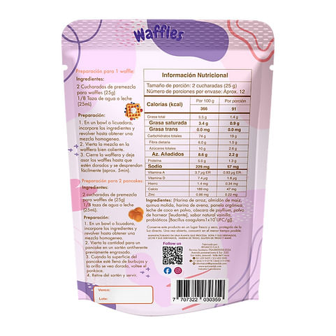 MercadoAbarrotes DespensaHarinas y Mezclas Para PrepararMezcla Quinoa Club Waffles Vainilla x 300 g