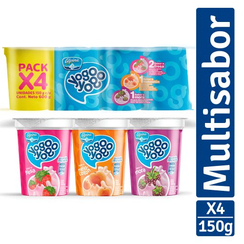 MercadoLácteos Huevos y RefrigeradosYogurt y Bebidas LácteasMultiempaque X4 und Yogo Yogo Multisabor Vaso 150g