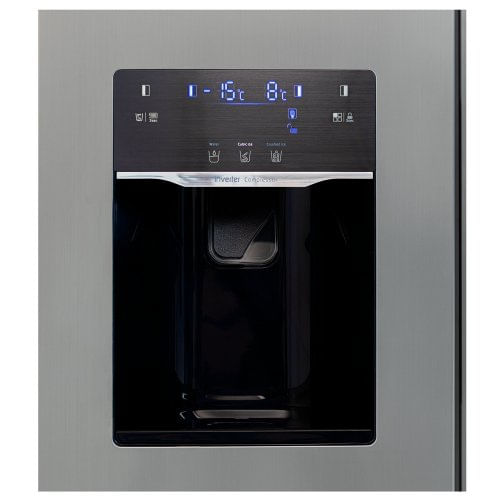 Nevecón Side by Side con capacidad de almacenamiento de 547 Litros Brutos y 513 Litros Netos, con Control electrónico multifunción tipo touch el cual le permite realizar las siguientes funciones, controlar el dispensador de agua, hielo, modo vacaciones el cual le permite mantener su aparato con bajo consumo de energía mientras usted se ausenta, bloqueo niños, para evitar de manera segura la manipulación del equipo, modo congelamiento rápido, modo enfriamiento rápido y bloqueo de controles. 100% ecológica - libre de CFC. Bajo nivel de ruido y bajo consumo de energía.