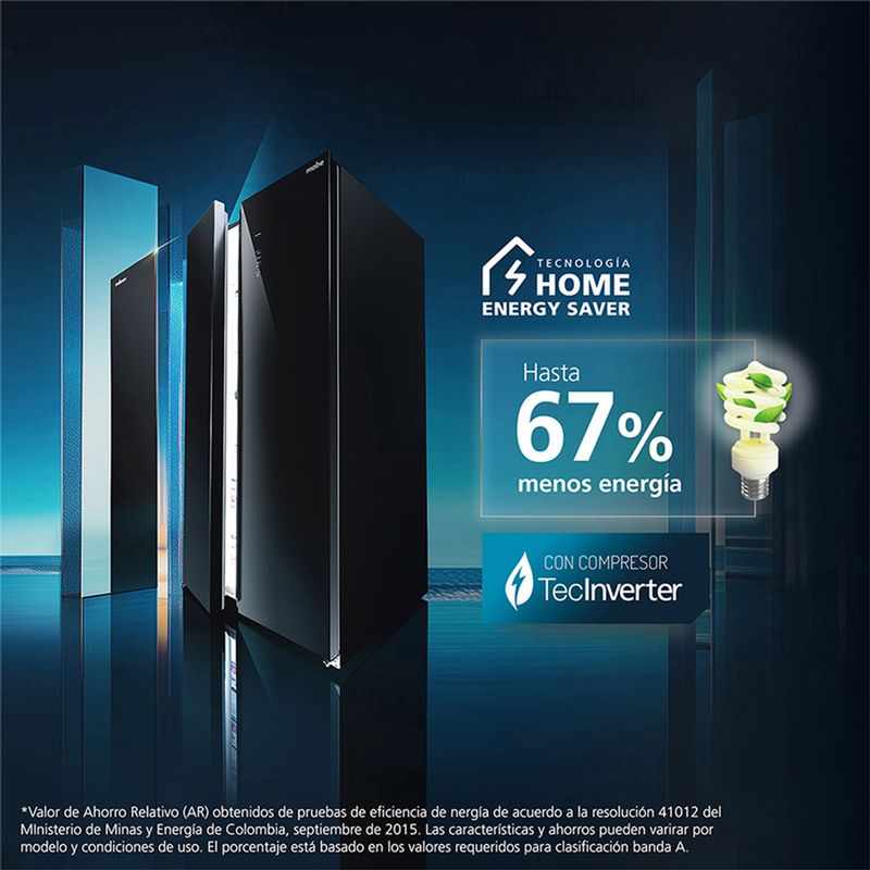 67% de ahorro en energía con Tecnología Home Energy Saver. Su compresor inverter te da un funcionamiento más eficiente alcanzando la temperatura ideal en menos tiempo. Display digital que permite controlar todas las funciones del refrigerador de manera fácil e intuitiva; super cooling, alarma de puerta abierta, control del temperatura en el congeldor y refrigerador y más. 480 litros de capacidad interior para almacenar todo lo que necesites sin preocuparte por el espacio.
