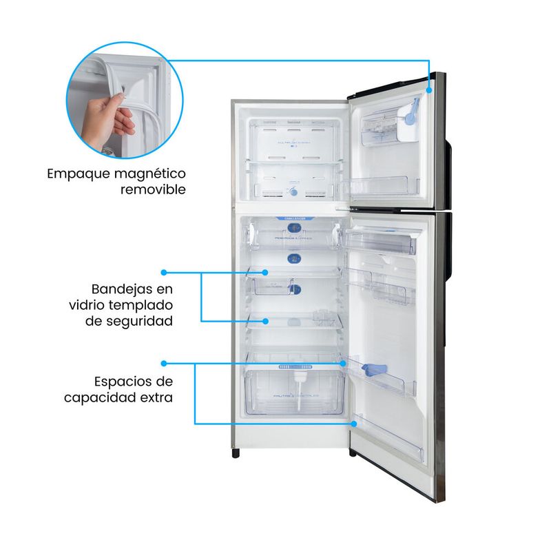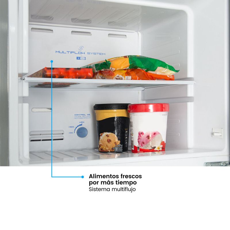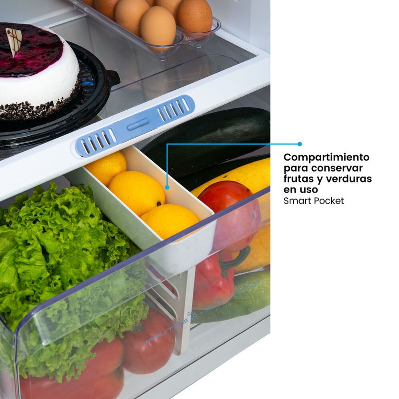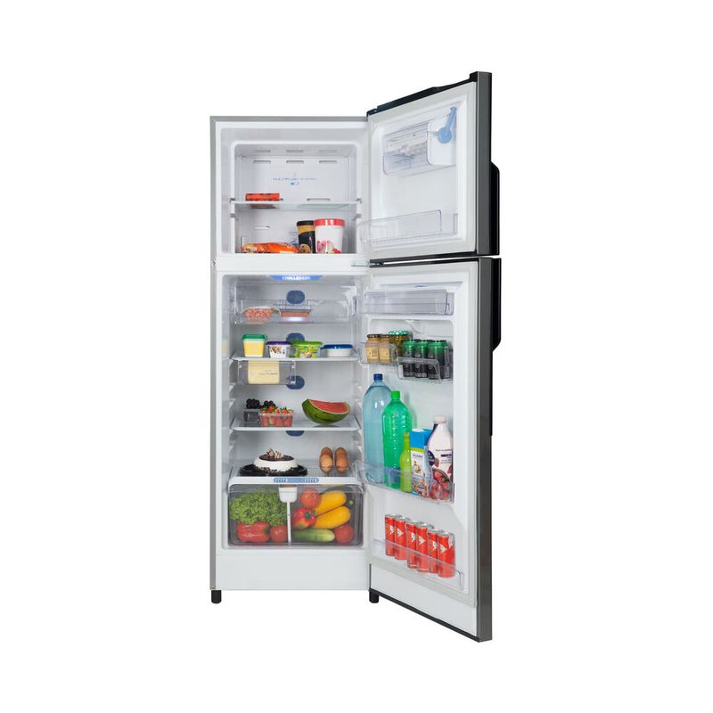 Nevera No Frost de la nueva línea de neveras challenger lúmina, de 300 Litros con panel digital de clase tropical de bajo ruido y de bajo consumo energético, incorpora un sistema multiflujo el cual realiza una distribución constante y uniforme de la temperatura para mantener los alimentos mas frescos con descongelación automática, cuenta con refrigerante R600a que conlleva a una mayor eficiencia energética y reduce el riesgo del impacto sobre el calentamiento global y el daño a la capa de ozono. Incluye un novedoso Smart Pocket en el compartimiento de frutas y verduras pensado para alimentos iniciados.