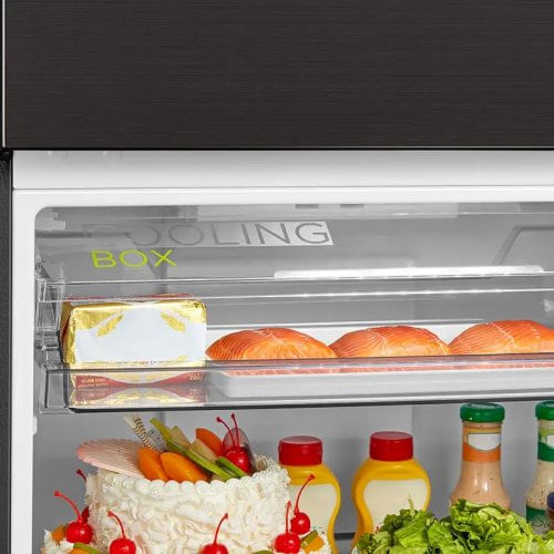 Disfruta de frescura y eficiencia con el refrigerador 12 pies de Midea, diseñado en elegante color Jazz Black. Gracias a su tecnología Inverter Quattro, ahorra energía, opera silenciosamente y mantiene temperaturas estables. Su flujo de aire Multi Air Flow y filtro Active C-Fresh aseguran que los alimentos se mantengan frescos en cada rincón y durante más tiempo. Incluye un compartimiento Cooling Box ideal para carnes y mariscos, luz LED y control digital para un manejo sencillo sin necesidad de abrir la puerta.