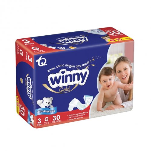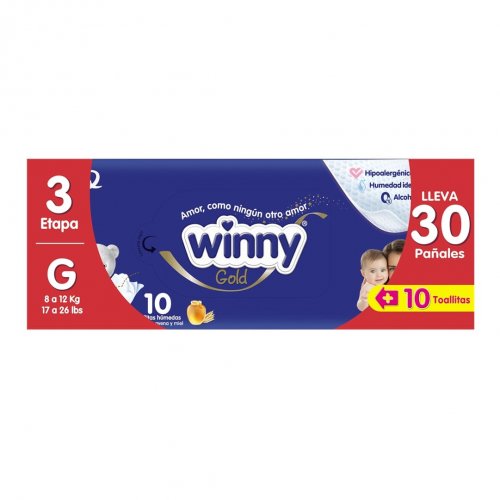 Pañal Winny Gold Etapa 3 x 30 und + Toallas Avena x10 und