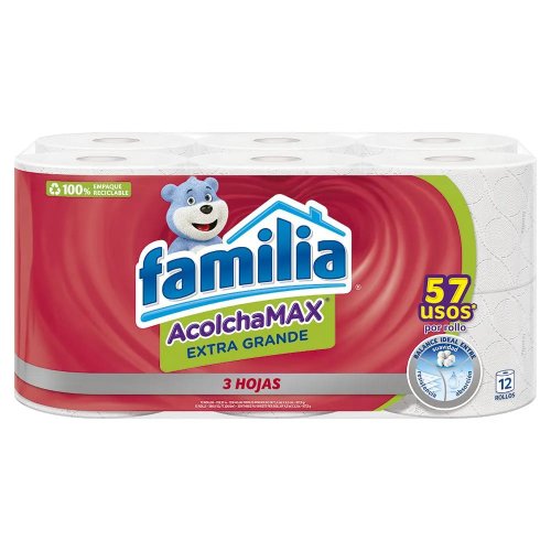 MercadoAseo HogarLimpieza para BañoPapel Higiénico Familia Acolchamax Extragrande x 12 rollos 288 m