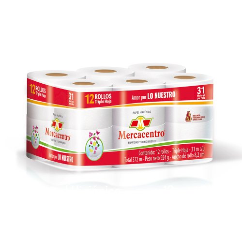 MercadoAseo HogarLimpieza para BañoPapel Higienico Mercacentro x 12 rollos 372 m