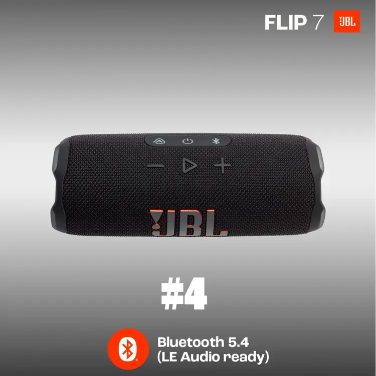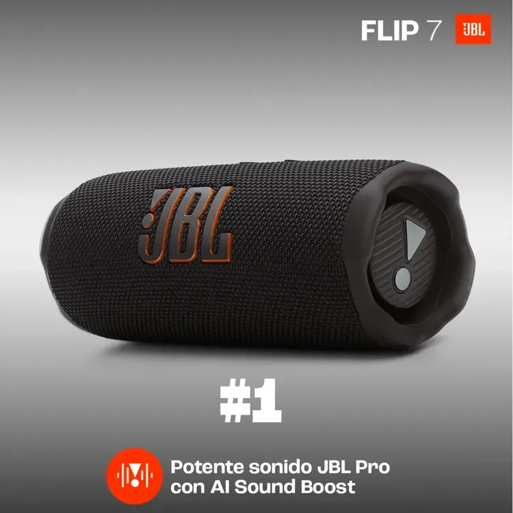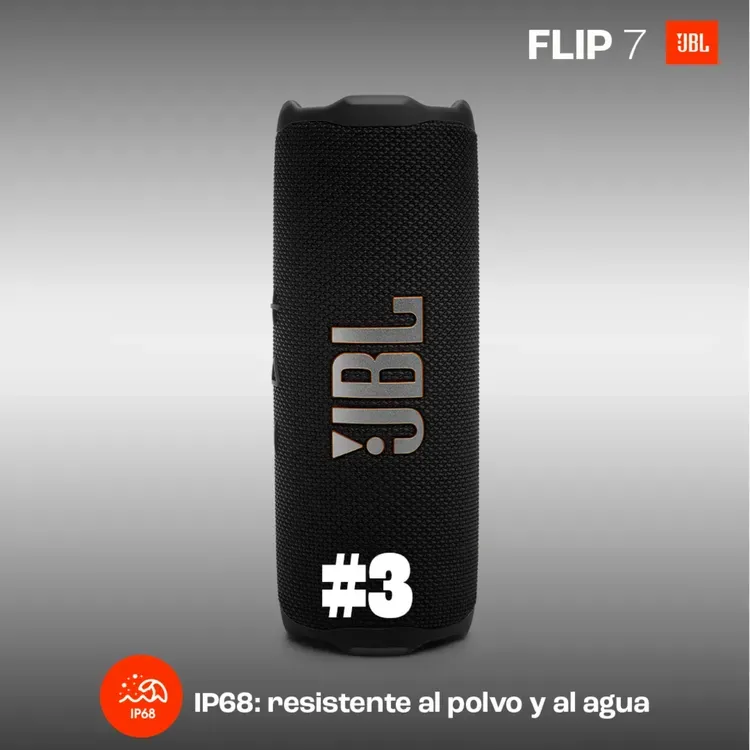 ¡Lleva la fiesta a cualquier lugar con el nuevo JBL Flip 7! Este parlante no solo hereda la leyenda de sus predecesores, sino que la supera con un sonido JBL Pro más potente de 35W y graves profundos que se sienten. Su diseño robusto y elegante en color negro es perfecto para quienes no se detienen: úsalo en la piscina, la montaña o en tu sala gracias a su certificación IP68 resistente al agua y al polvo.