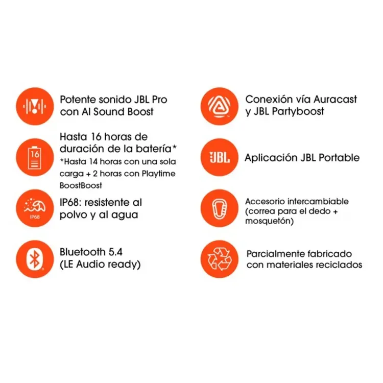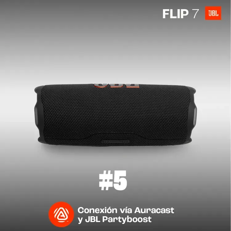 Con hasta 16 horas de batería, la música no para. Además, gracias a la tecnología Auracast, puedes conectar varios parlantes compatibles para crear una experiencia de sonido envolvente única. El JBL Flip 7 es el compañero de aventuras definitivo que combina materiales reciclados con la tecnología de audio más avanzada del mercado.