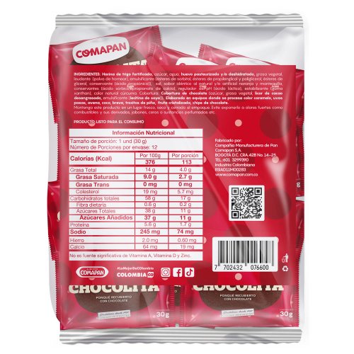 MercadoPanadería y ReposteríaPanadería DulcePonqué Comapan Minichocolita 12 und