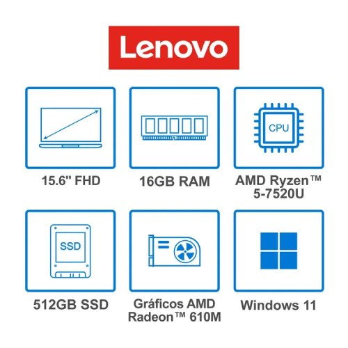 • Equipado con un procesador de última generación, Gráficos AMD Radeon™ 610M integrados,Altavoces estéreo orientados al usuario, 1,5 W x2, optimizados con Dolby Audio™ para tener todo el poder que necesitas. • Visualización de Alta Calidad: La pantalla FHD de 15.6' (1920 x 1080) TN de 250 nits antirreflejo te sumergirá en mundos virtuales impresionantes. Disfruta de imágenes nítidas y detalles asombrosos. • Durabilidad y Portabilidad: IdeaPad Slim 3 es un portátil que está diseñado para ser liviano y delgado, y que es hasta un 10 % más delgado que la generación anterior. • Mas rapido y mas lejos: Trabaje y estudie más rápido y con más distancia gracias a los puertos Type-C™ con todas las funciones para acelerar el suministro de energía, la salida de pantalla y la transferencia de datos, cámara hasta FHD con obturador de privacidad. Mantenga el ritmo con una batería más grande y Rapid Charge Boost que brinda dos horas de uso con una carga de 15 minutos. • Multitarea Inteligente: Trabaje de manera inteligente y sin inconvenientes todos los días en varias aplicaciones a la vez mientras está en movimiento con el potente rendimiento de los procesadores AMD Ryzen™ serie 7000 con hasta 16 GB de memoria LPDDR5, mejorados por el rendimiento adaptativo de Smart Power.