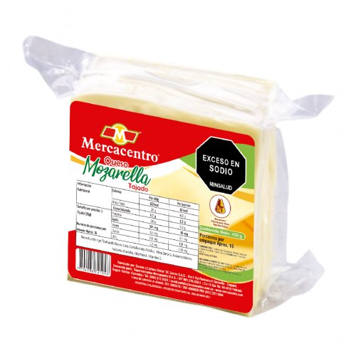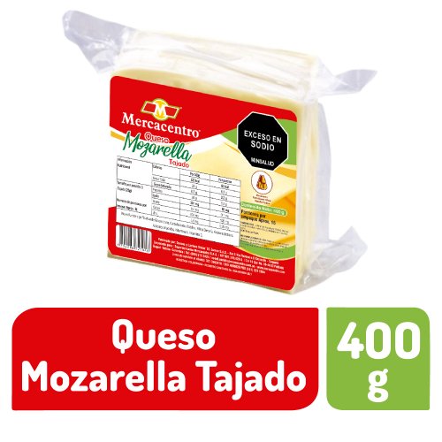 MercadoLácteos Huevos y RefrigeradosQuesosQueso Mozarella Mercacentro Tajado 400 g